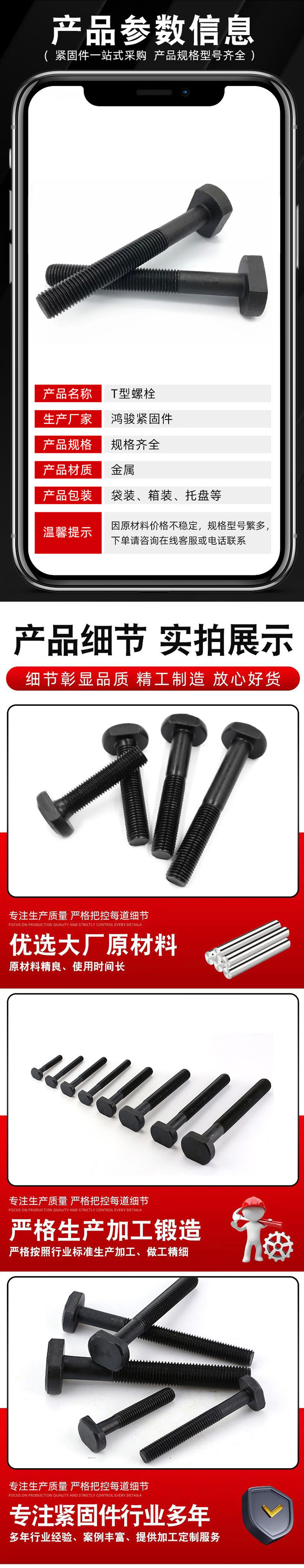 T型螺栓国标高强度加长方头螺栓